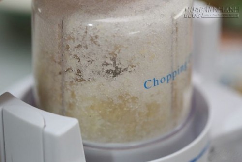 Bước 1: Gừng tươi rửa sạch và thái thành từng miếng nhỏ cho vào máy xay sinh tố, sau đó thêm 2 thìa muối biển và máy và bật xay cho gừng và muối được làm nhỏ trộn đều với nhau thành hỗn hợp.