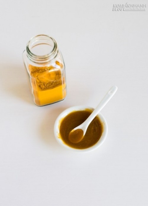 1 thìa ăn sữa chua tinh bột nghệ (Tinh bột nghệ đã được tách chất dầu gây bết dính của nghệ, bạn có thể tìm mua ở Viện Hóa Học trên đường Hoàng Quốc Việt, HN)