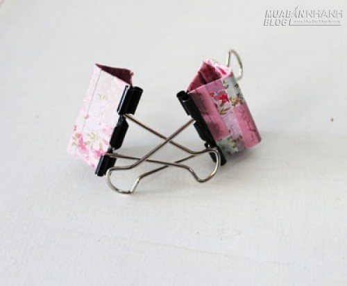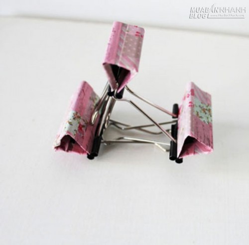 Bước 1:- Nếu thích chiếc giá đỡ đẹp mắt hơn, bạn có thể cắt băng dính dán bọc trang trí bên ngoài chiếc kẹp nhé!