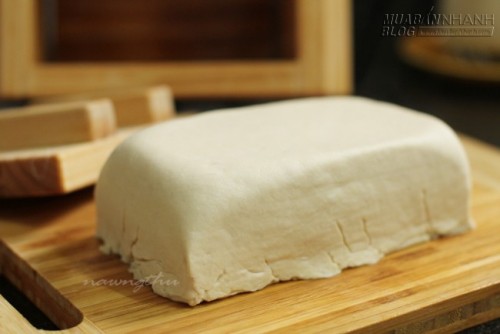 Đậu sau khi ép – với 500g đậu hạt, mình làm được miếng đậu to chừng này: