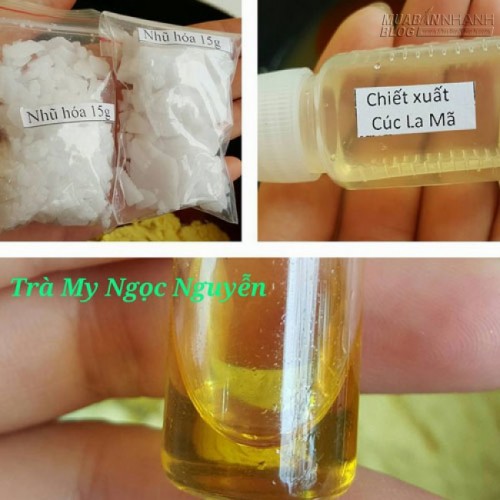 (Nhũ hóa, tinh dầu quế, chiết xuất cúc la mã và dầu gấc các bạn mua tại các cửa hàng bán nguyên liệu mỹ phẩm).