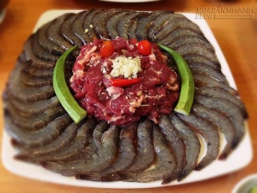 - Các loại hải sản như tôm, mực trứng, ngao, sò