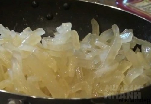 - Sau đó, bạn chờ khoảng 10 – 12 tiếng cho cùi dừa ngấm với đường, khi nào sợi dừa chuyển sang màu trong suốt thì mang đi sao.