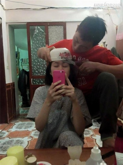 Hình ảnh đươc một vài trang mạng nổi tiếng chia sẻ trên mạng xã hội đã thu hút được rất nhiều sự chú ý của mọi người. Cô gái đã đăng bức ảnh với dòng mô tả: "Vợ đòi đi cắt tóc, sẵn tay soái ca trổ tài cây kéo vàng". Người chồng đang chăm chú để tạo kiểu chơ vợ, cảm thấy cây lược vẫn chưa đủ, anh chàng đã xài luôn một cái tô để định hình mái tóc, cho đường cắt được đều và thẳng hơn.