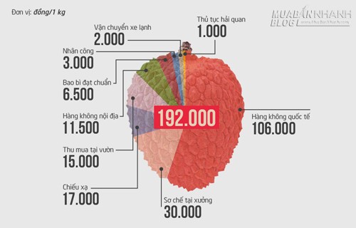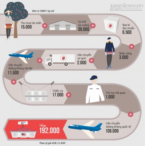Cùng với giá nguyên liệu trước và sau khi thu hoạch, bao bì đạt chuẩn, nhân công, vận chuyển đường bộ, chiếu xạ, thủ tục hải quan, riêng vận chuyển hàng không quốc tế chiếm đến 60% tổng chi phí. Số tiền này chưa tính đến rủi ro hàng có thể hỏng và bị trả lại.
