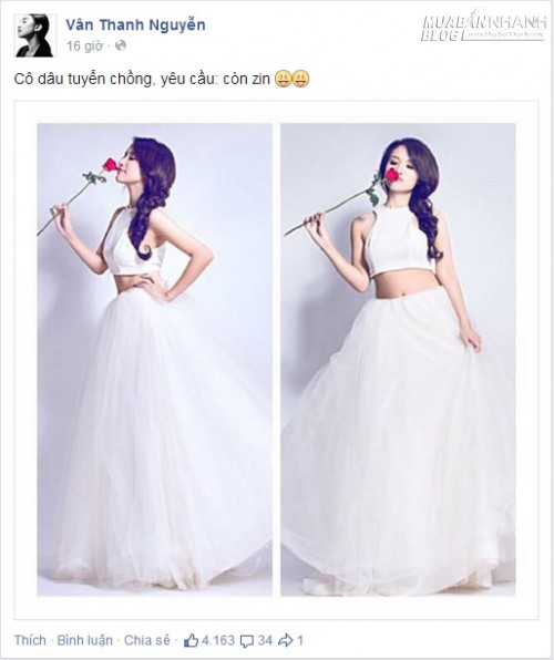 Mới đây thông tin, MC Thanh Vân Hugo bất ngờ đăng tải hình ảnh mặc váy cô dâu cùng dòng trạng thái giống như một "bản tin tuyển chồng" được viết khá hài hước: "Cô dâu tuyển chồng, yêu cầu: còn zin".