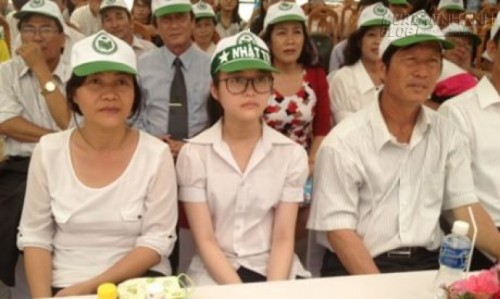 Cha mẹ của Trường ngồi tại Trường chuyên Trần Hưng Đạo theo dõi chương trinh - Ảnh: Quế Hà