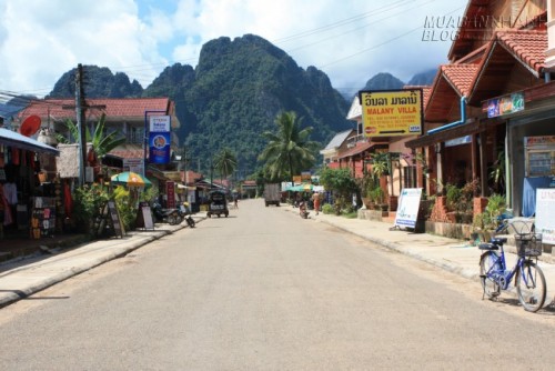 Dẫu mỗi ngày có vô số du khách đến rồi cũng có vô số khách đi… nhưng Vang Vieng không xô bồ lộn xộn mà vẫn cứ yên ả, thanh thản như cuộc sống thường nhật của phố núi quê mùa. Ảnh: Es Tanapong