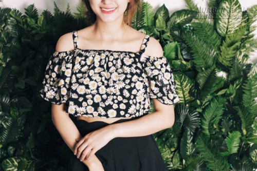 Áo croptop rớt vai cũng là một lựa chọn không tồi cho mùa hè. Những kiểu croptop điệu đà in họa tiết bắt mắt này sẽ làm set đồ của bạn nổi bật hơn rất nhiều.