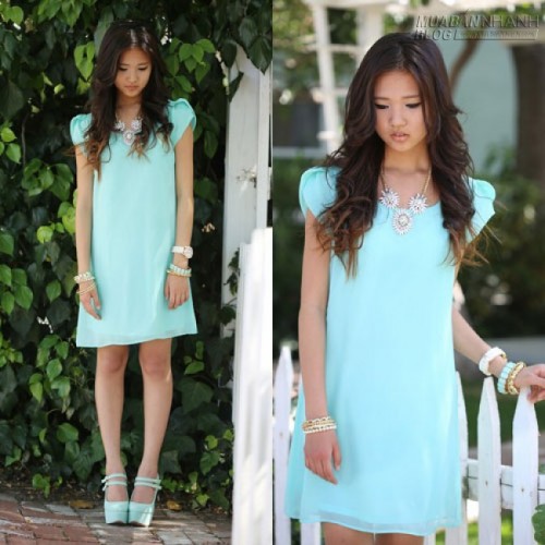 Màu xanh bạc hà mát mắt dành cho những cô nàng nữ tính, dịu dáng. Mix cùng phụ kiện như vòng tay, túi xách và giày cao gót phù hợp nhé!