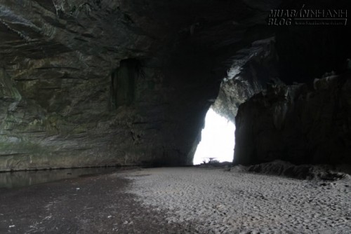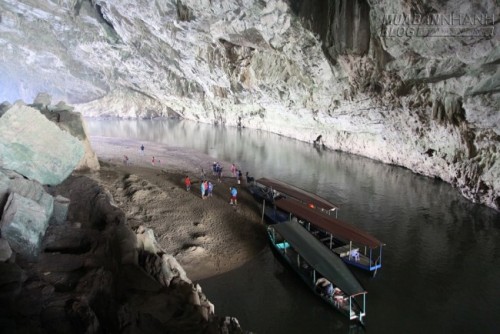 Thuyền có thể đậu cạnh bãi cát giúp du khách có trải nghiệm thú vị ở một “bãi biển thu nhỏ” bên trong động.