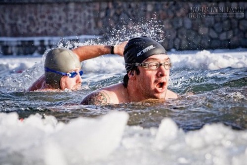 Nhiều người coi bơi giữa mùa đông băng giá là cách tăng cường sức đề kháng cho cơ thể.