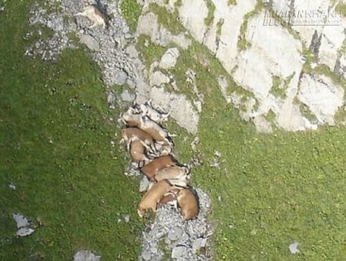 Vào năm 2005, rất nhiều người đã kinh hoàng chứng kiến gần 1.550 con cừu điên cuồng lao đầu xuống vách đá ở Thổ Nhĩ Kỳ. Người ta đã ngăn cản nhưng không thể xuể. 450 con trong số đó chết ngay tức khắc, 1000 con còn lại bị thương.