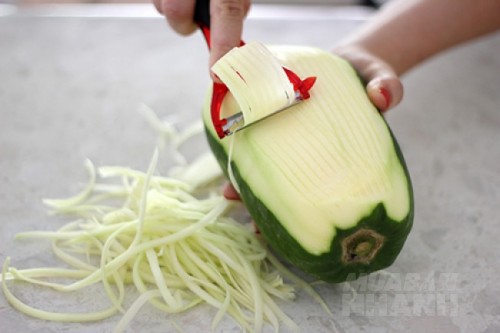 - Đu đủ xanh rửa sạch, gọt bỏ phần vỏ xanh bên ngoài và hạt bên trong. Sau đó, thái mỏng rồi cho vào máy xay sinh tố xay nhuyễn trong khoảng 3 phút.