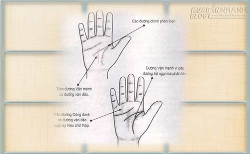 Trên đường Công danh có đường vân đảo hoặc hình chữ thập