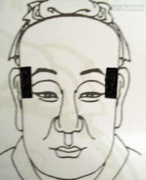 2 đuôi chân mày xệ xuống thành hình chữ bát, 2 đuôi mắt cũng xệ xuống; mũi cao mà 2 má thấp làm cho gương mặt không hài hòa.