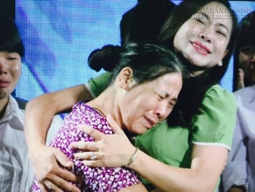 Cô giáo Hoàn và mẹ nghẹn ngào tại Nhà hát Kịch Việt Nam - (Ảnh cắt từ clip).