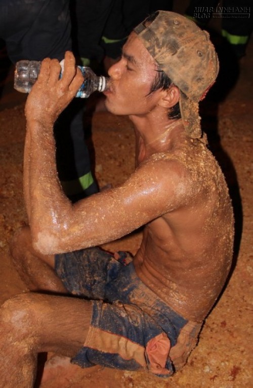 Nhóm gần mười người nỗ lực đào bới, khoảng 20 người phía trên vận chuyển đất ra ngoài. Do đường kính đào hẹp, chỉ khoảng một mét song song với đường ống nên lực lượng cứu hộ thay phiên nhau.