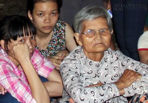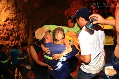 Bà nội cháu ngồi bên ngoài trông ngóng cháu gái được giải cứu. Người thân cho biết, chị Nguyễn Thị Hồng Nguyên (37 tuổi), mẹ của bé gái ngất xỉu từ chiều khi hay tin con bị nạn. Cha bé mất cách nay 5 năm do tai nạn giao thông.