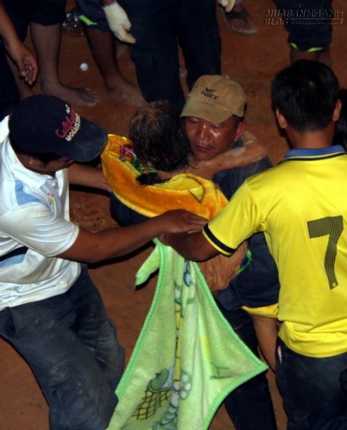 Một dây thòng lọng được thả xuống để cháu bé lòng tay vào, buộc giữ lại không để em bị tuột sâu xuống. Lẫn trong tiếng cuốc xẻng, thỉnh thoảng bé gái lại khóc vọng lên bảo mệt, buồn ngủ và khó thở... Phía trên, các nhân viên cứu hộ liên tục trấn an: "Các chú đến rồi, sẽ đưa con ra ngoài. Con đừng sợ..."