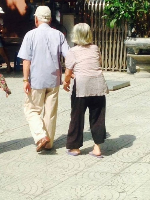 Hai ông bà cụ luôn tay trong tay nhau khiến cư dân mạng xúc động mạnh.