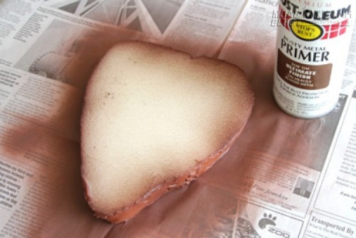 - Dùng chai sơn xịt phun một lớp màu nâu xung quanh phần keo đã dán để tấm mút xốp trông giống như màu miếng bò bít tết thật hơn.