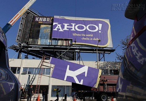 Biển quảng cáo của Yahoo tại San Francisco đang bị gỡ bỏ. Ảnh: Chronicle |